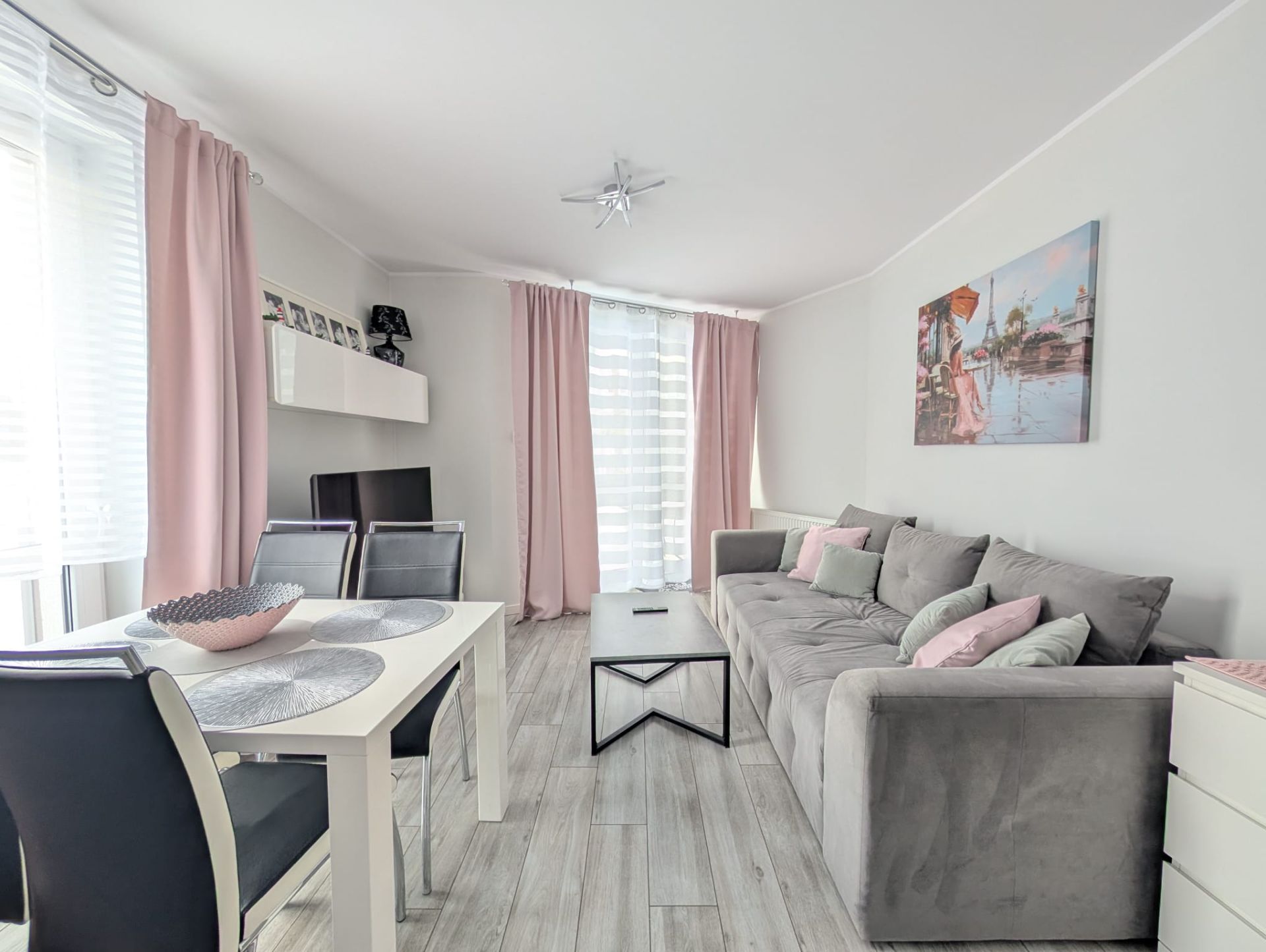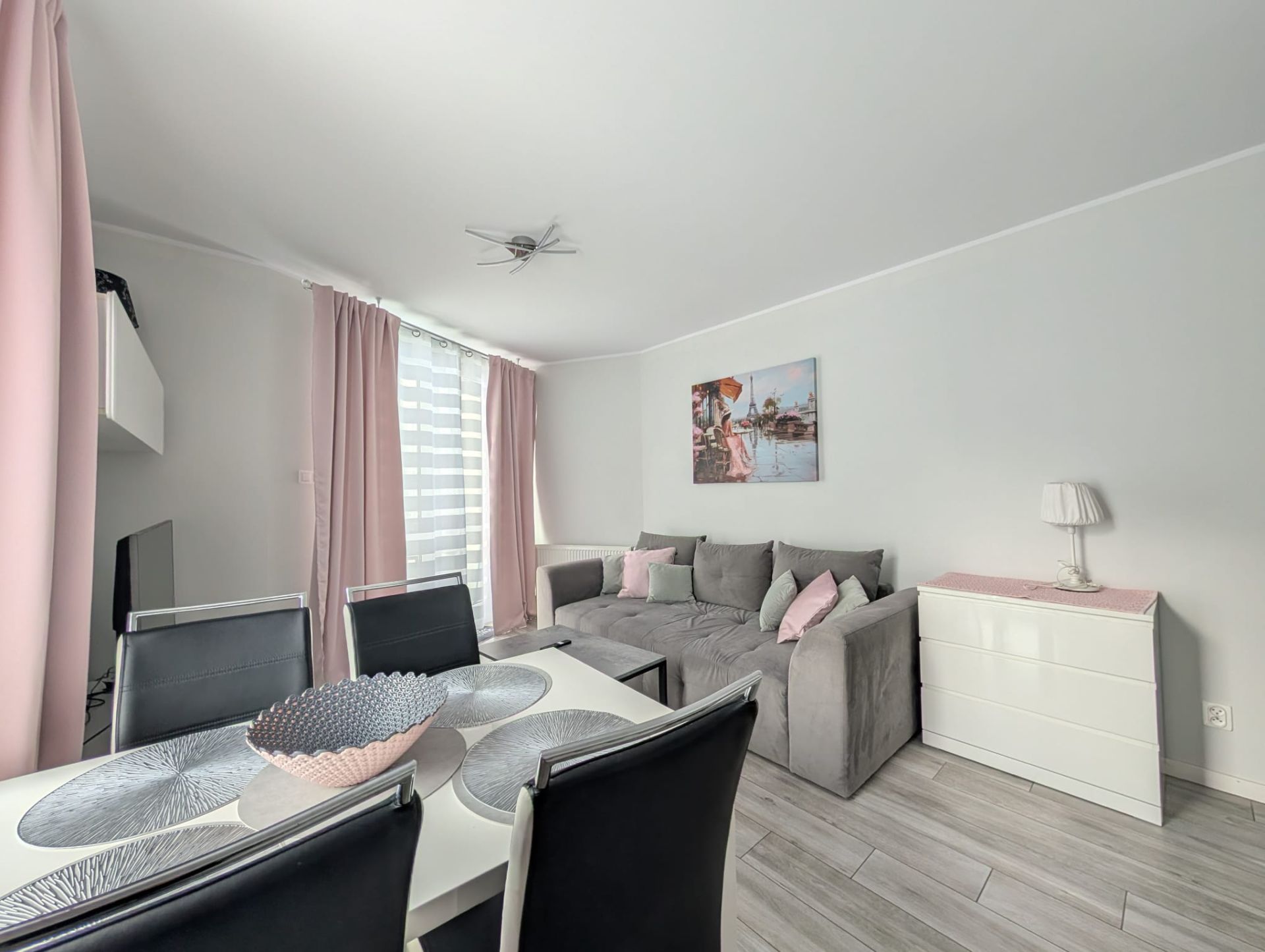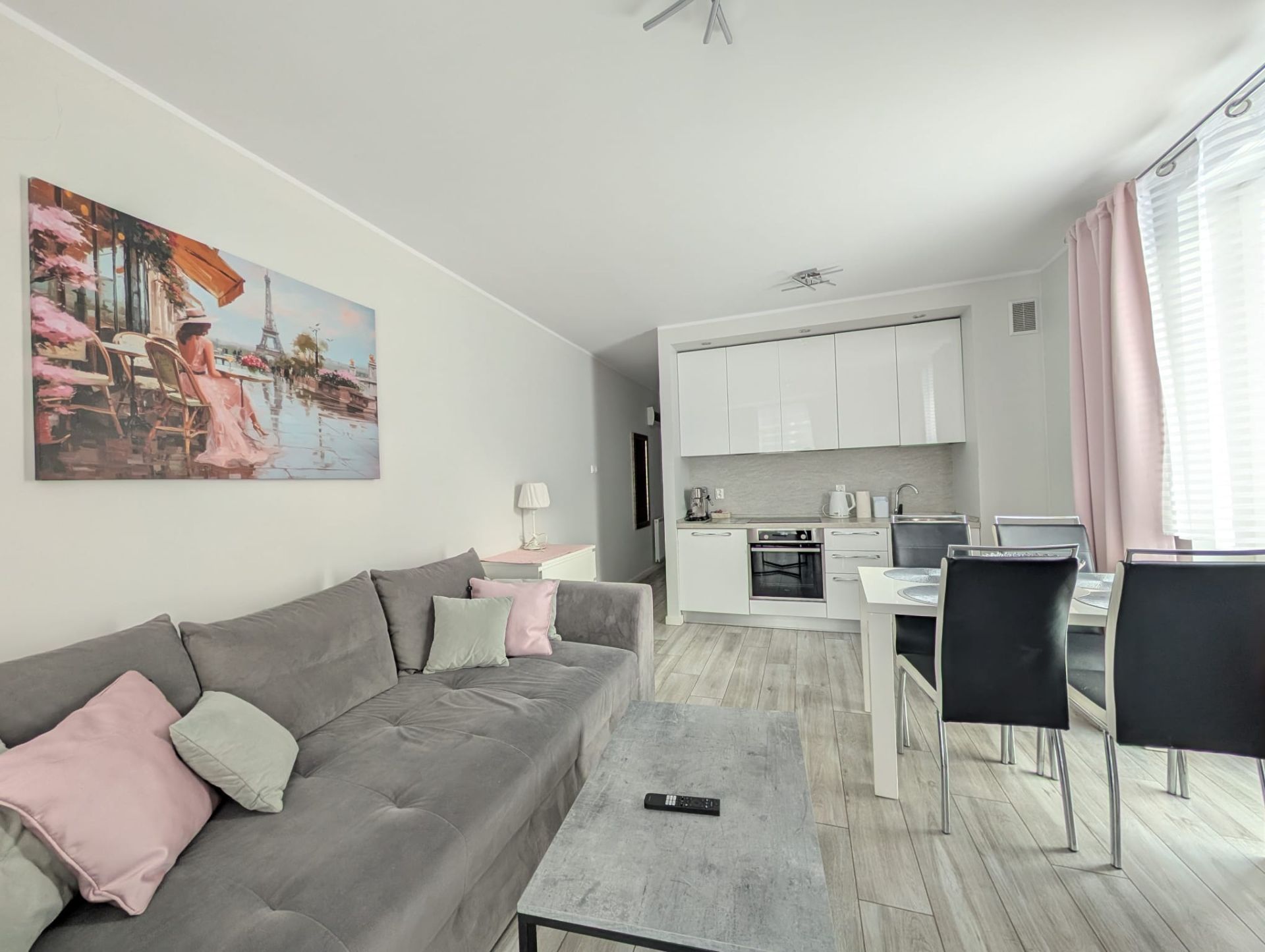 Wnętrze zostało zaprojektowane z myślą o wygodnym wypoczynku zarówno podczas krótkich, jak i dłuższych pobytów. Goście mają do dyspozycji bezpłatne Wi-Fi oraz telewizor, umożliwiające komfortowy odpoczynek po dniu spędzonym nad morzem lub na wycieczkach po okolicy. Apartament się zarówno dla rodzin, jak i par lub grupy przyjaciół.