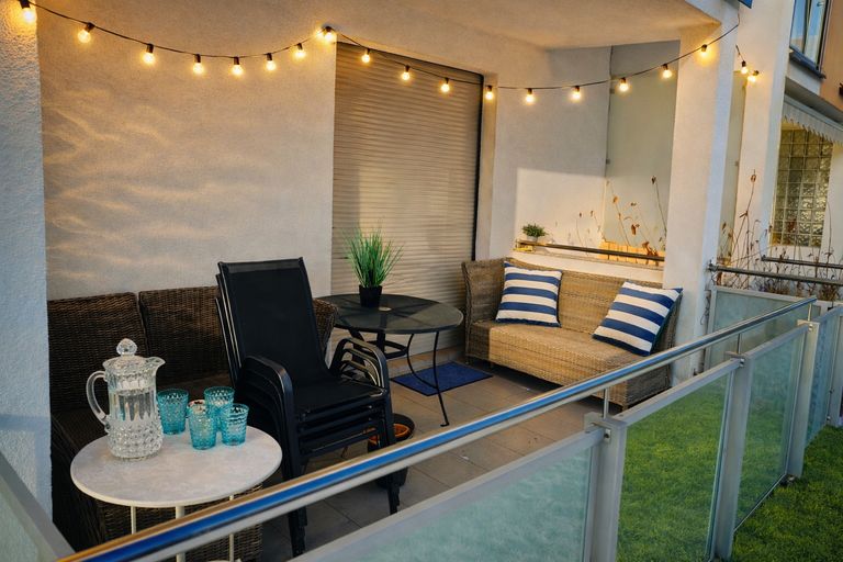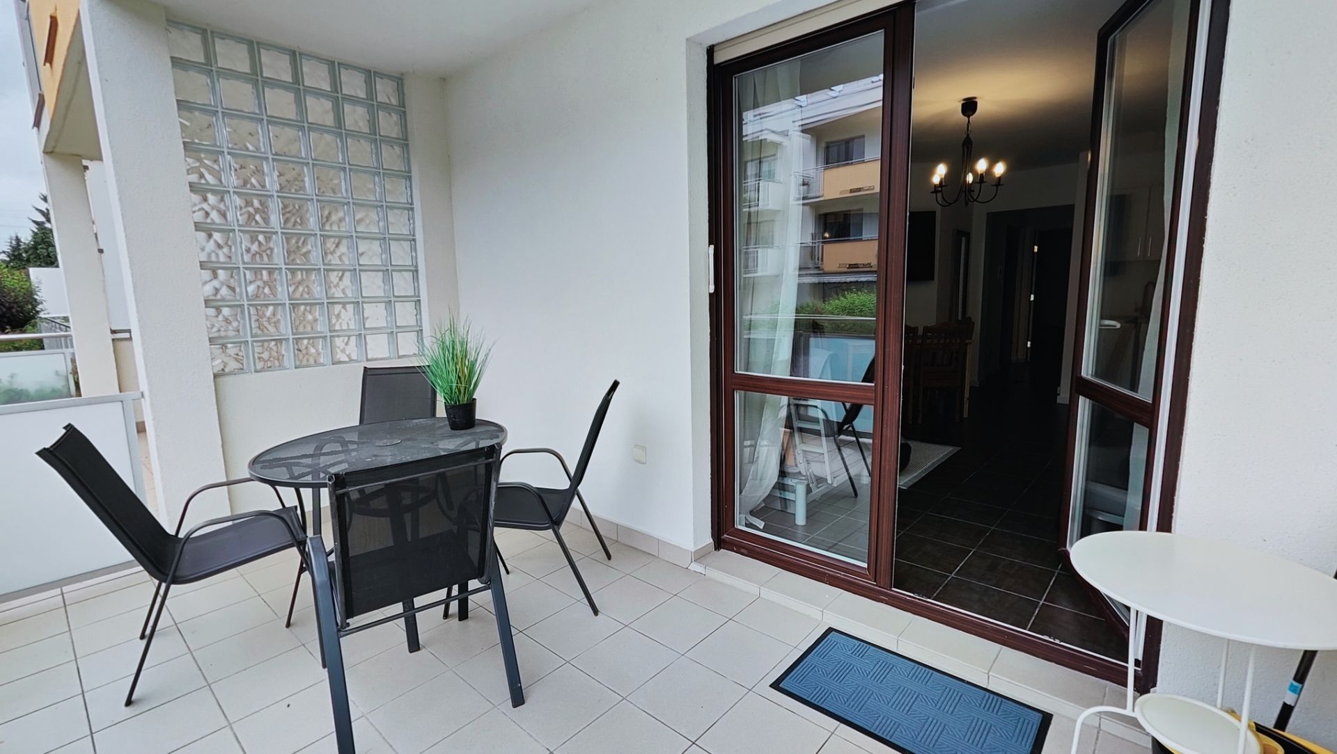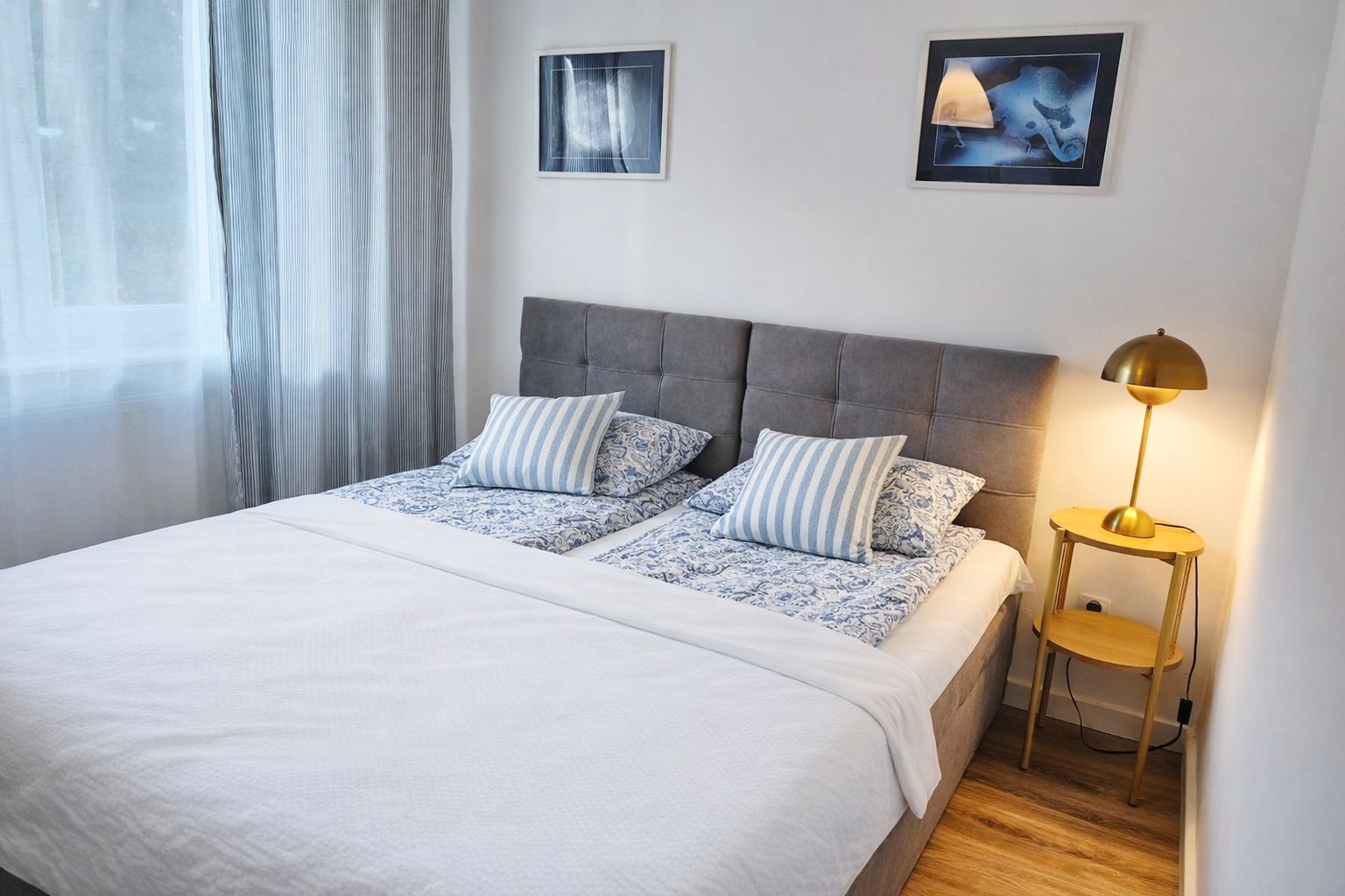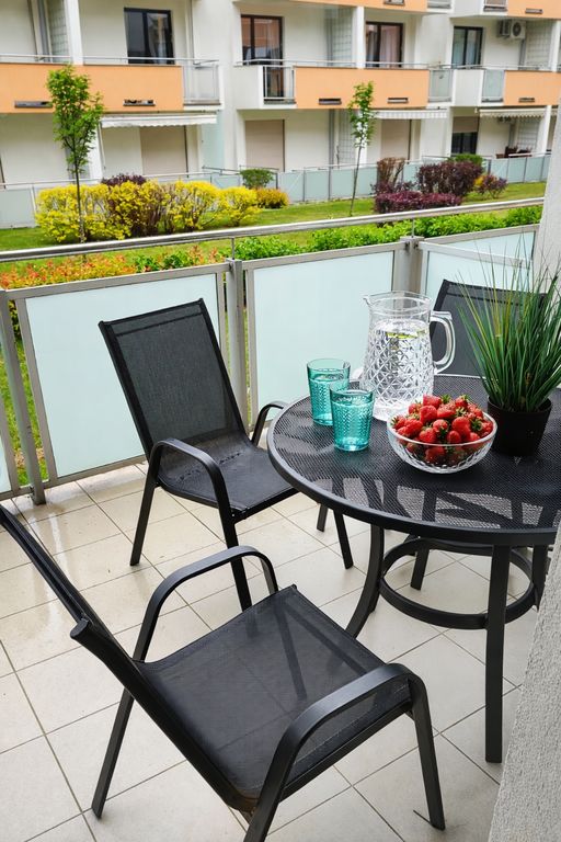 Wnętrze zostało funkcjonalnie zaprojektowane, aby zapewnić komfortowy pobyt zarówno rodzinom, jak i grupom znajomych. Do dyspozycji gości jest oddzielna sypialnia oraz przestronny salon z aneksem kuchennym. Apartament posiada również balkon, idealny na poranną kawę lub wieczorny odpoczynek.