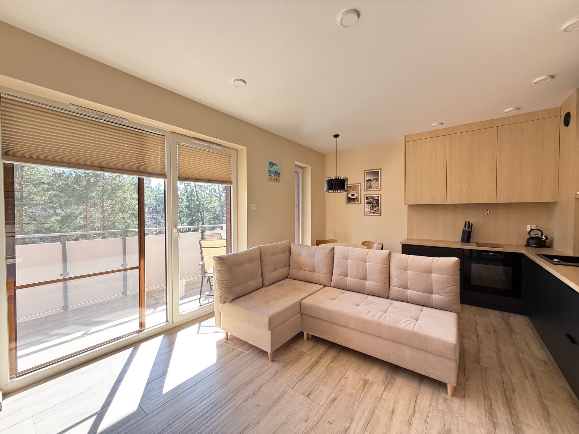 Funkcjonalny apartament w Stegnie z widokiem na las