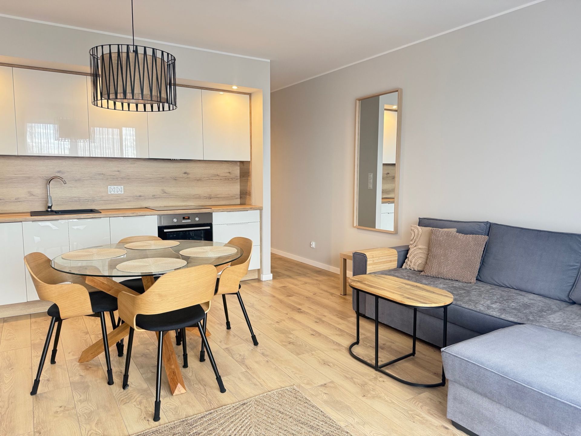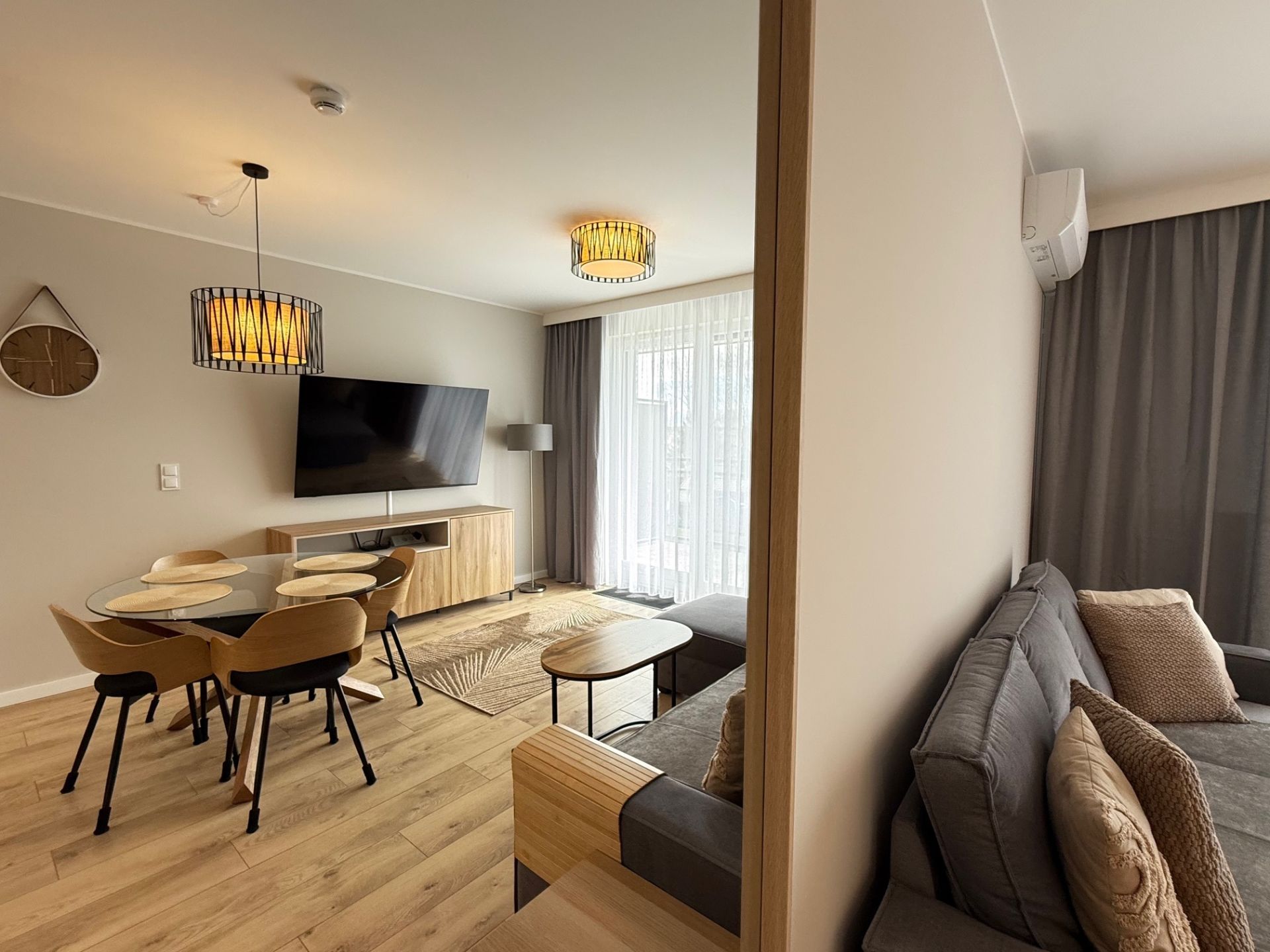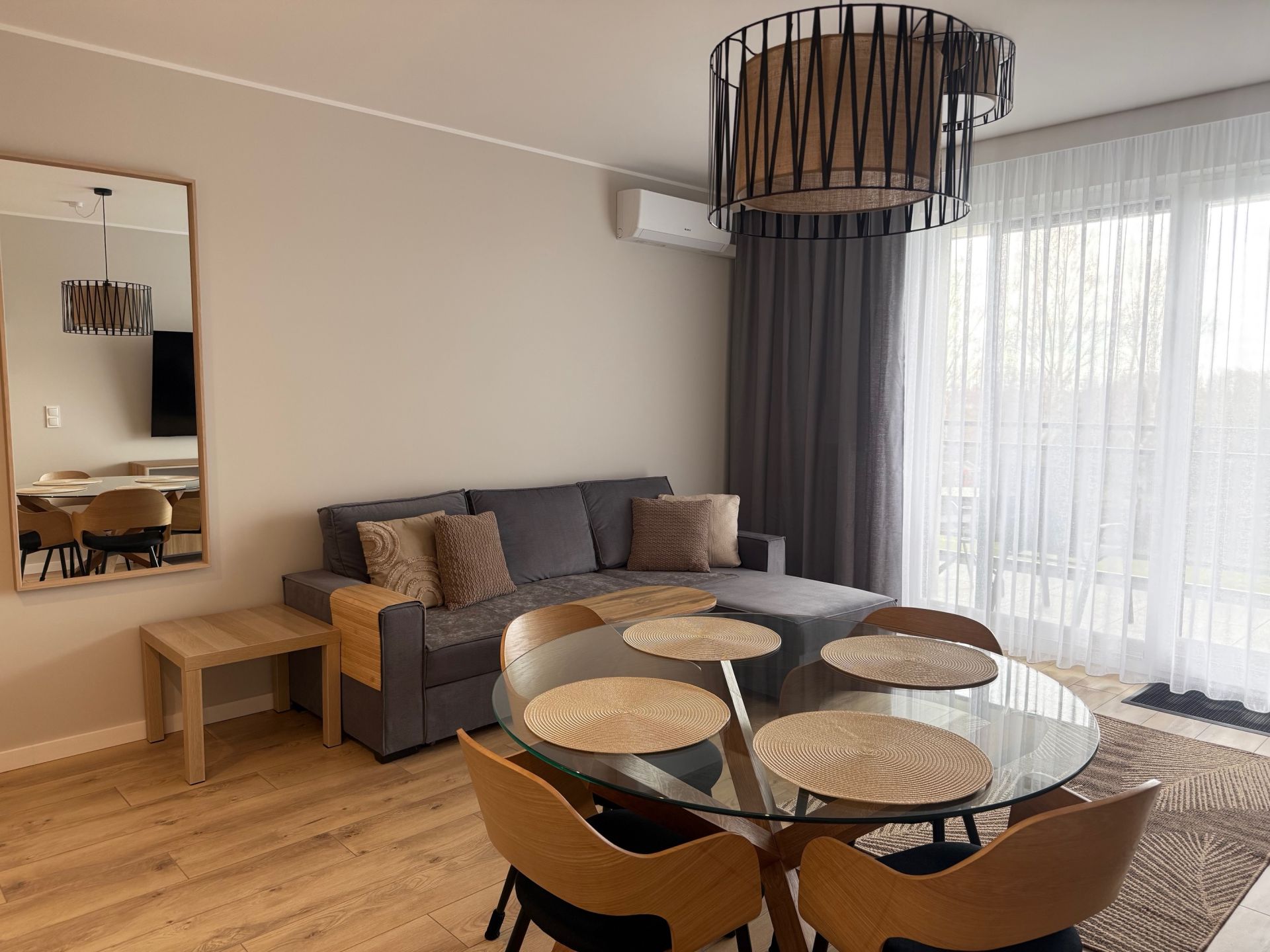 Funkcjonalny apartament w Stegnie z widokiem na las