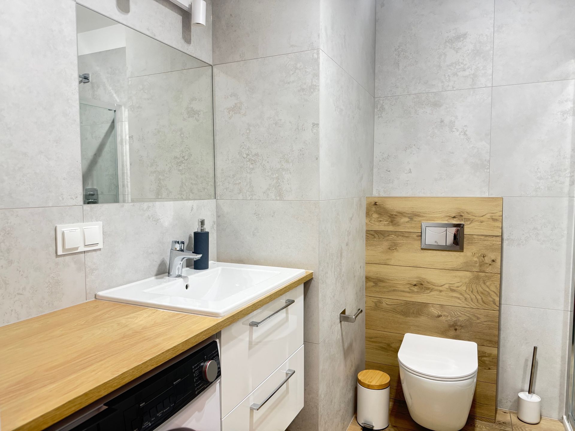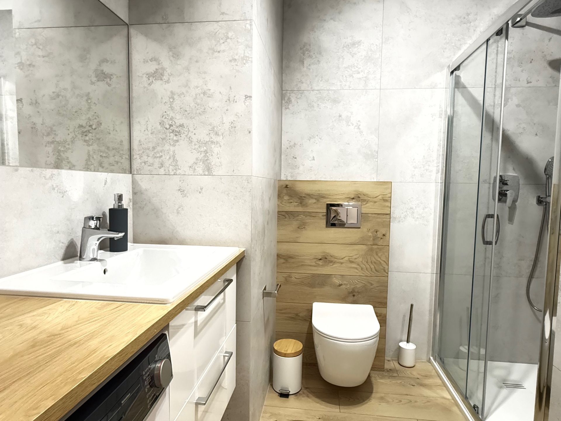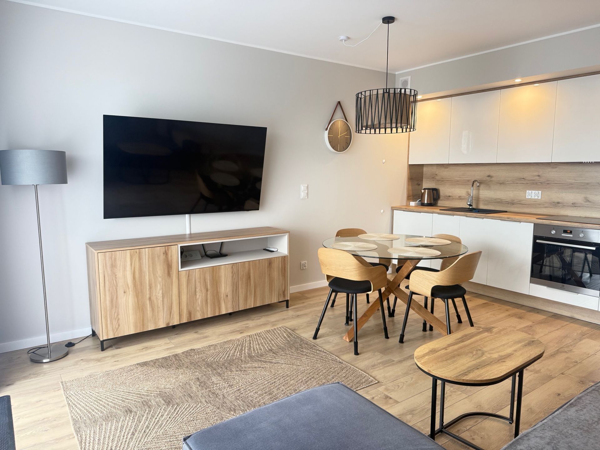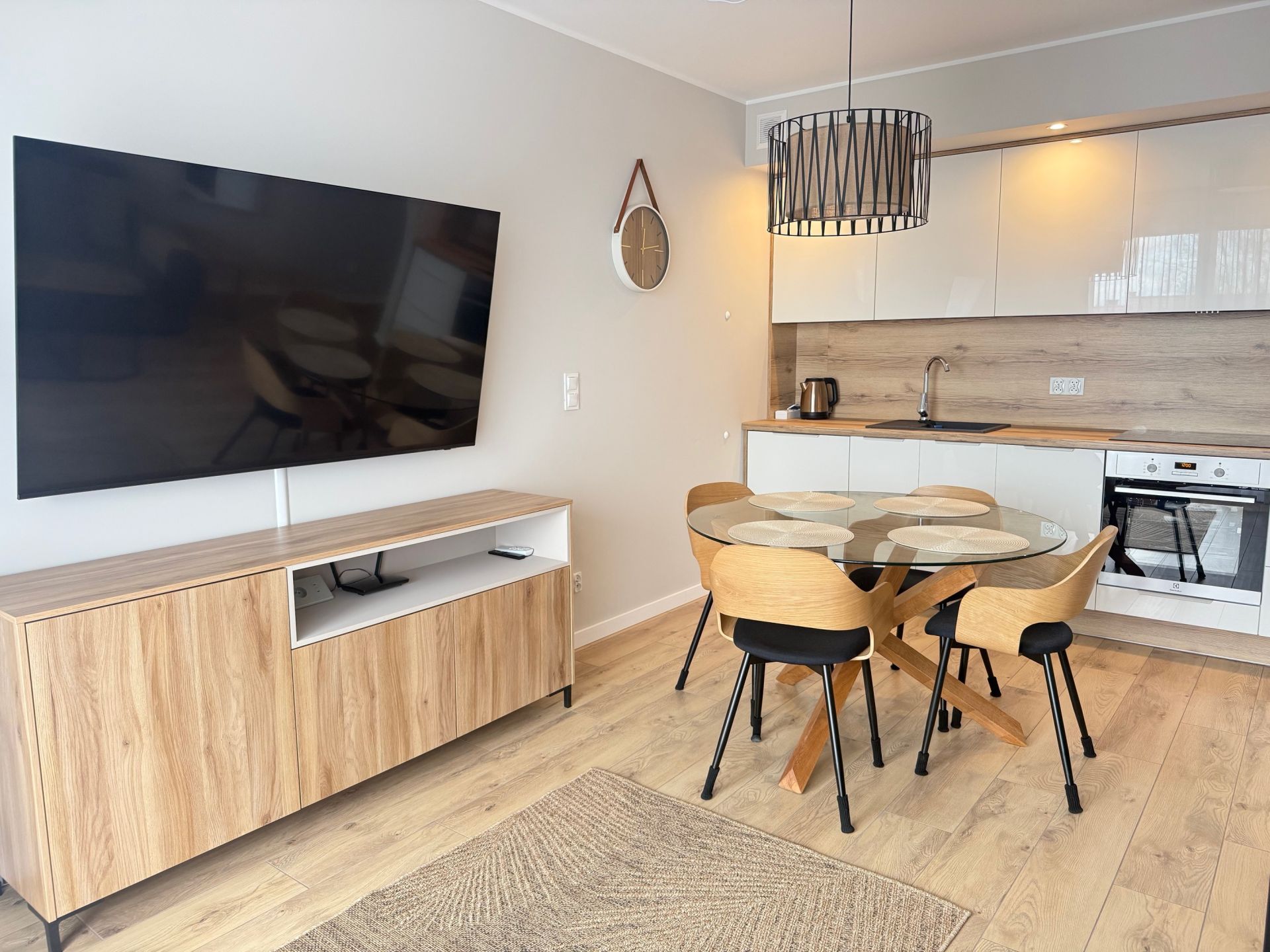 Funkcjonalny apartament w Stegnie z widokiem na las